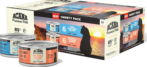 ACANA Premium Pate Variety 12 Pack: Salmon & Chicken Recipe (6) + Tuna & Chicken Recipe (6), 3oz