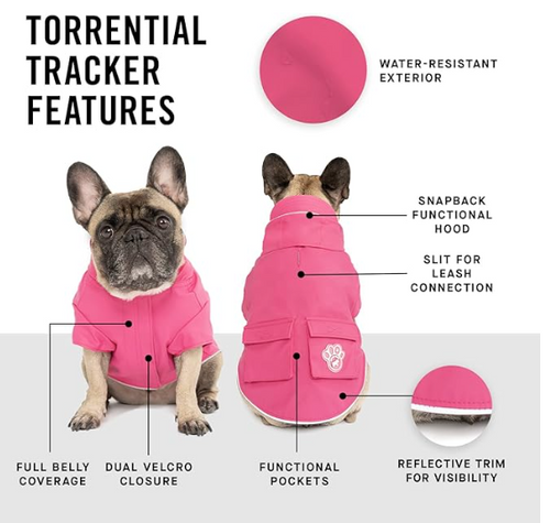 Canada Pooch Torrential Tracker Dog Rain Jacket - Easy On, Adjustable Full Body Coverage, Waterproof, Functional Pockets, Reflective Trim Rain Coat for Dogs, Great for Dogs