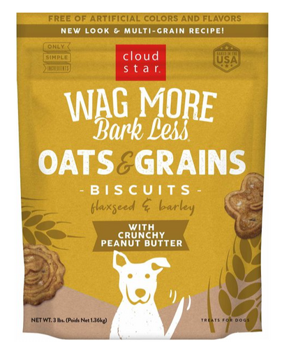 Cloud Star Wag More Bark Less Oats & Biscuits with Crunchy Peanut Butter Cookie Recipe Dog Treats