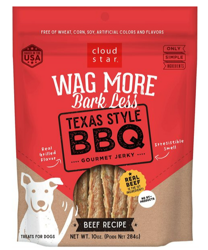 Cloud Star Wag More Bark Less Texas Style BBQ Beef Recipe Grain-Free Jerky Dog Treats, 10-oz bag