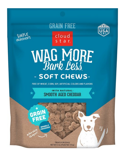 Cloud Star Wag More Bark Less Soft Chews with Smooth Aged Cheddar Grain-Free Dog Treats, 5-oz bag