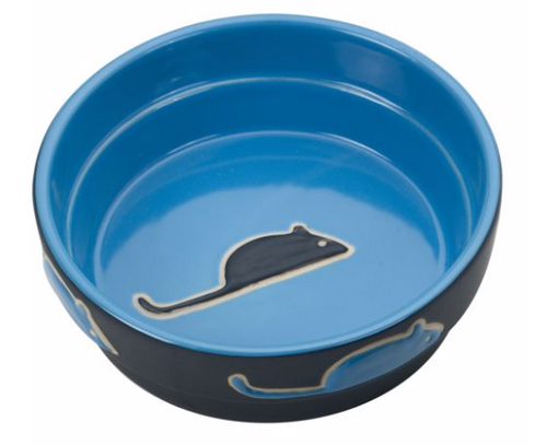 8 OZ. CERAMIC FRESCO CAT DISH - BLUE
