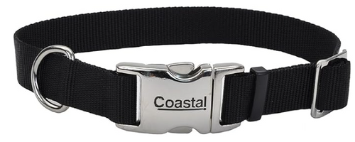 Coastal Pet Adjustable Dog Collar with Metal Buckle - Fade-Resistant Dog Collar Perfect for Walking & Tie Outs - Comfortable Collar with Snap Lock - Black - 1" x 18" - 26"