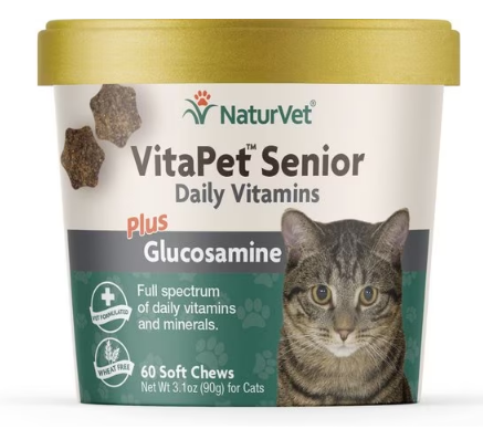 NaturVet VitaPet Senior Daily Vitamins Plus Glucosamine Cat Supplement, 60 count
