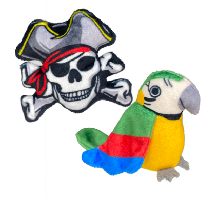 MULTIPET CAT MARGARITAVILLE 2pc CATNIP PARROT & PIRATE SKULL