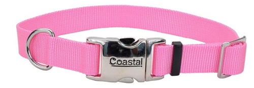 Coastal Pet Adjustable Dog Collar with Metal Buckle - Fade-Resistant Dog Collar Perfect for Walking & Tie Outs - Comfortable Collar with Snap Lock - Pink Bright - 1" x 18" - 26"