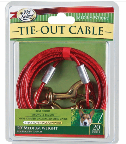 Pet Select - 20 FT. PET SELECT VINYL COATED STEEL CABLE DOG TIE OUT - MED