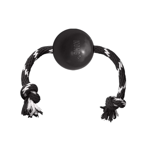 KONG EXTREME BALL WITH ROPE DOG TOY ROPE WITH EXTREME BALL BLACK, WHITE