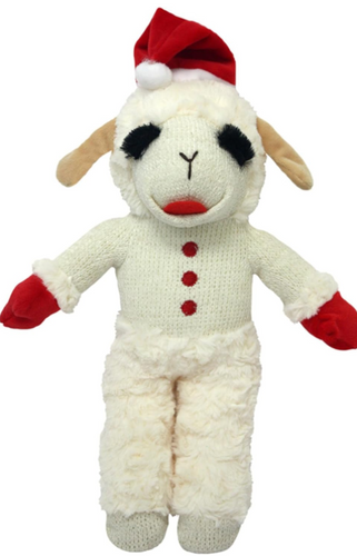 Multipet Lamb Chop Dog Plush Toy w/Santa Hat - Dog Toy for All Dogs - Extra Soft Plush Dog Toy - Stuffed Animal Dog Toy for Cuddling & Playing - Cute Pet Toy (10.5”, Cream)