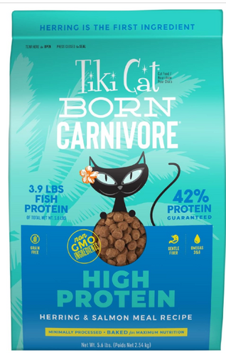Tiki Cat Born Carnivore High Protein, Herring & Salmon Meal, Grain-Free Baked Kibble to Maximize Nutrients, Dry Cat Food, 5.6 lbs. Bag