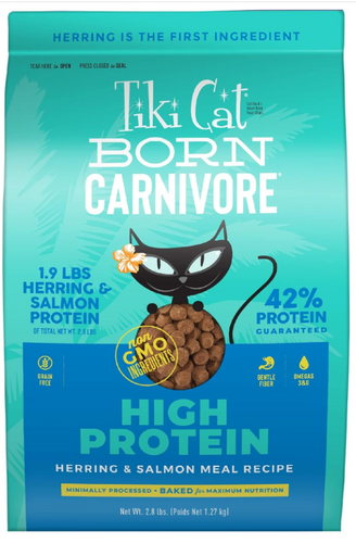 Tiki Cat Born Carnivore High Protein, Herring & Salmon Meal, Grain-Free Baked Kibble to Maximize Nutrients, Dry Cat Food, 2.8 lbs. Bag