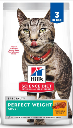 Hill's Science Diet Perfect Weight, Adult 1-6, Weight Management Support, Dry Cat Food, Chicken Recipe, 3 lb Bag