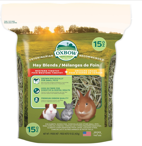 Oxbow Animal Health Hay Blends, Western Timothy & Orchard, Guinea Pig Hay, Small Pet Bunny Supplies, All Natural Grass for Guinea Pig & Rabbit, Rabbit Supplies for Bunnies, 15 oz. Bag