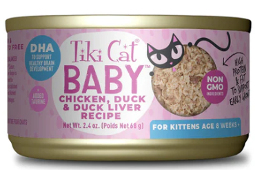Tiki Cat Baby Chicken, Duck, & Duck Liver Shreds Grain-Free Wet Kitten Food 2.4oz